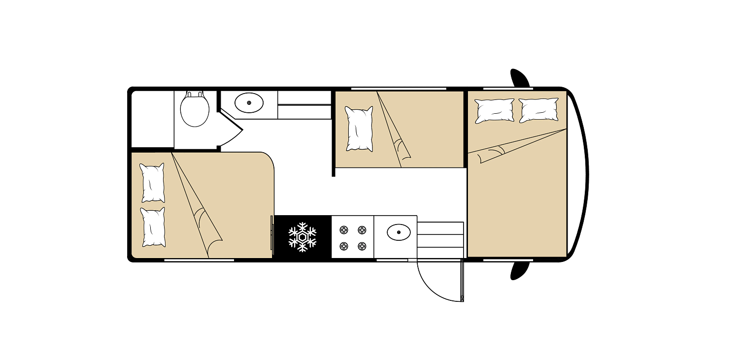 | Extra | Cruise control, campingtafel, USB poort, afsluitgordijn bij achterste bed |